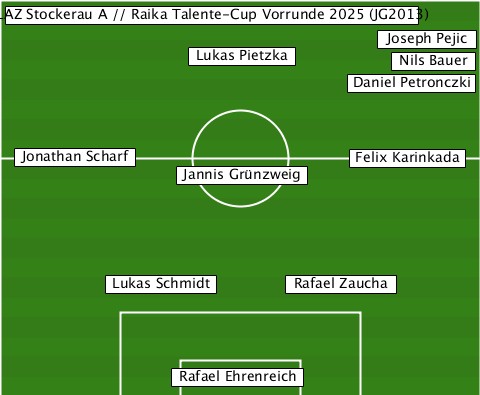 --LAZ Stockerau A // Raika Talente-Cup Vorrunde 2025 (JG2013) ---------------------------Joseph Pejic --------------Lukas Pietzka--Nils Bauer -------------------------Daniel Petronczki --Jonathan Scharf---------Felix Karinkada -------------Jannis Grünzweig---- --------Lukas Schmidt-Rafael Zaucha -------------Rafael Ehrenreich---