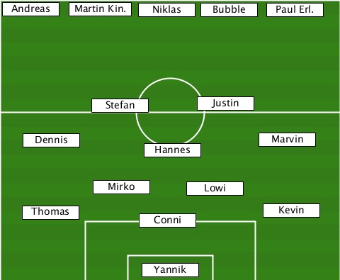 --------Martin Kin.-------------- --Andreas------Niklas-Bubble--Paul Erl. ----------Stefan-----Justin------- ----Dennis------Hannes------Marvin- ----------Mirko-----Lowi---------- ----Thomas------Conni-------Kevin-- ---------------Yannik------------