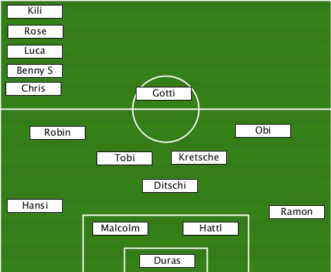 --Kili--------------------------- --Rose--------------------------- --Luca--------------------------- --Benny S------------------------ --Chris---------Gotti------------- ----Robin----------------Obi------ -----------Tobi----Kretsche------- ---------------Ditschi----------- --Hansi---------------------Ramon- ----------Malcolm---Hattl--------- ---------------Duras-------------