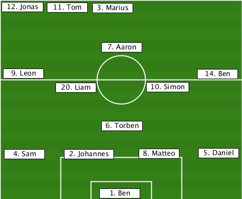--12. Jonas---------------------- --------11. Tom-3. Marius--------- ---------------7. Aaron---------- --9. Leon--------------------14. Ben ---------20. Liam-----10. Simon--- ---------------6. Torben--------- --4. Sam---2. Johannes-8. Matteo-5. Daniel ---------------1. Ben------------