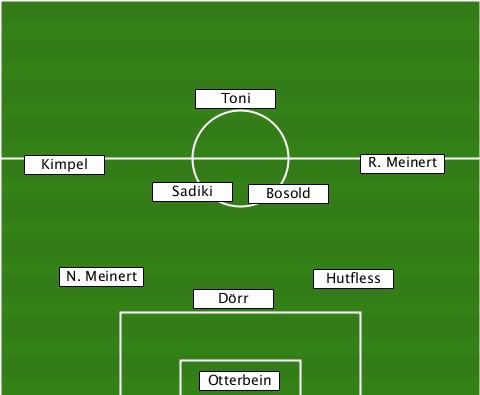 --------------Toni--------------- ---Kimpel-----------------R. Meinert ------------Sadiki-Bosold--------- -----N. Meinert--------Hutfless--- --------------Dörr--------------- ---------------Otterbein---------