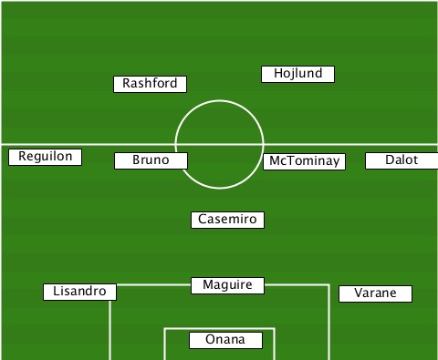 ---------------------Hojlund----- ----------Rashford--------------- --Reguilon-Bruno-------McTominay-Dalot ---------------Casemiro---------- -----Lisandro---Maguire-----Varane- ---------------Onana-------------
