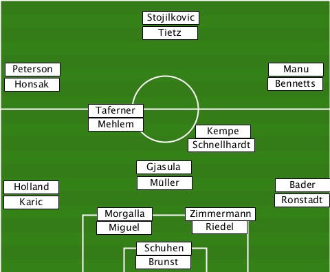 ---------------Stojilkovic------- ---------------Tietz------------- --Peterson------------------Manu-- --Honsak--------------------Bennetts ----------Taferner--------------- ----------Mehlem-----Kempe-------- --------------------Schnellhardt- ---------------Gjasula----------- --Holland-------Müller--------Bader --Karic----------------------Ronstadt -----------Morgalla-Zimmermann---- -----------Miguel----Riedel------- ---------------Schuhen----------- ---------------Brunst------------