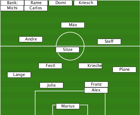 ------------------Kriesch-------- --Bank:-Ramé---Domi---------------- --Michi-Carlos-------------------- ---------------Mäx--------------- ------André--------------Steff---- --------------Sitze-------------- ----------Festl-----Krieche--Plane- ---Lange------------------------- -----------Julia------Franz------- ---------------------Alex-------- --------------Marius-------------