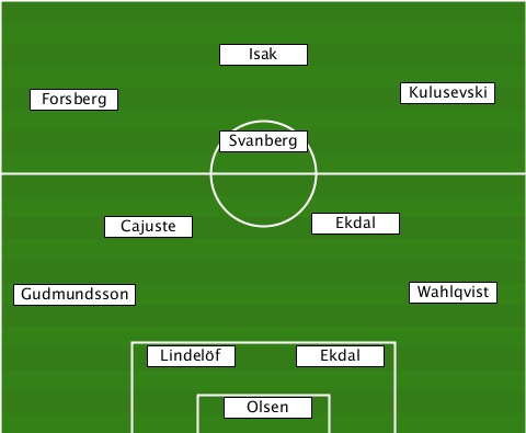 ---------------Isak-------------- ---Forsberg----------------Kulusevski ---------------Svanberg---------- --------Cajuste------Ekdal-------- --Gudmundsson--------------Wahlqvist ----------Lindelöf--Ekdal--------- ---------------Olsen-------------