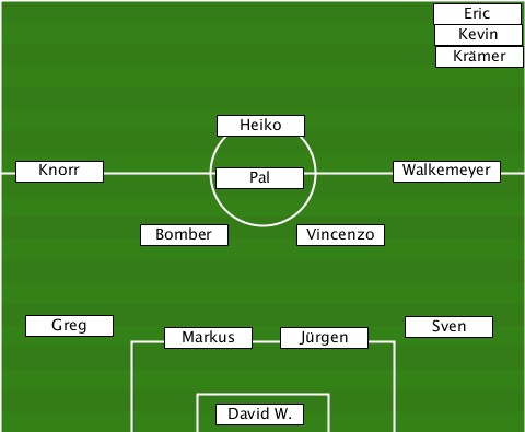----------------------------Eric- ----------------------------Kevin ----------------------------Krämer ---------------Heiko------------- --Knorr---------Pal--------Walkemeyer ----------Bomber-----Vincenzo----- ---Greg-----Markus---Jürgen--Sven--- ---------------David W.----------