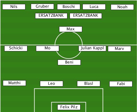 ---------Gruber------------------ --Nils----------Boschi-Luca---Noah-- ----------ERSATZBANK-ERSATZBANK--- ---------------Max--------------- --Schicki--Mo---------Julian Kappl-Marv ---------------Beni-------------- --Matthi----Leo------Blasl----Fabi-- ---------------Felix Pilz--------