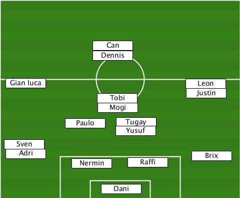 --------------Can---------------- --------------Dennis------------- --Gian luca----------------Leon--- --------------Tobi---------Justin- --------------Mogi--------------- ----------Paulo---Tugay----------- -----------------Yusuf----------- --Sven--------------------------- --Adri------Nermin--Raffi-----Brix-- ---------------Dani--------------