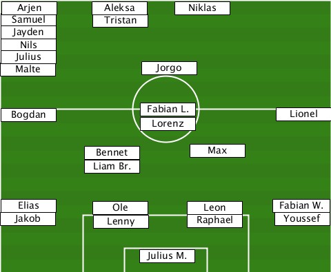 --Arjen-------------------------- ----------Aleksa---Niklas--------- --Samuel---Tristan---------------- --Jayden------------------------- --Nils--------------------------- --Julius------------------------- -Malte----------Jorgo------------- --Bogdan--------Fabian L.-Lorenz-Lionel ----------Bennet-----Max---------- ----------Liam Br.--------------- --Elias----Ole--------Leon-----Fabian W. -Jakob-----Lenny------Raphael--Youssef ---------------Julius M.---------