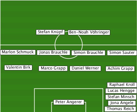 ----------Stefan Knüpf----------- -----------------Ben-Noah Vöhringer -Marlon Schmuck-Jonas Brauchle-Simon Brauchle-Simon Sauter --Valentin Birk-Marco Grapp-Daniel Werner-Achim Grapp --------------------------Raphael Kroll --------------------------Lucas Hengge --------------------------Stefan Minsch --------------Peter Angerer-Jona Angele --------------------------Thomas Reich