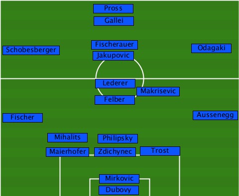 --------------Pross-------------- --------------Gallei------------- --Schobesberger-Fischerauer-Jakupovic-Odagaki --------------Lederer------------ --------------------Makrisevic--- --------------Felber------------- --Fischer-------------------Aussenegg --------Mihalits-Philipsky-------- --------Maierhofer-Zdichynec-Trost- ---------------Mirkovic---------- ---------------Dubovy------------