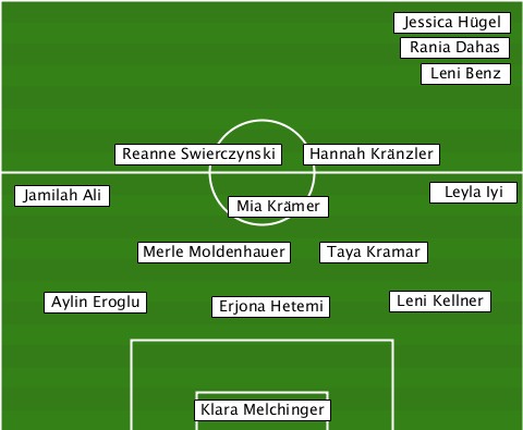 --------------------------Jessica Hügel --------------------------Rania Dahas ---------------------------Leni Benz --------Reanne Swierczynski-Hannah Kränzler --Jamilah Ali---Mia Krämer----Leyla Iyi ----------Merle Moldenhauer-Taya Kramar ----Aylin Eroglu-Erjona Hetemi-Leni Kellner -------------Klara Melchinger----