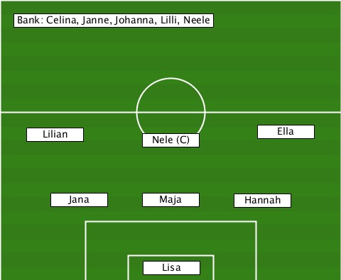 ---Bank: Celina, Janne, Johanna, Lilli, Neele ----Lilian------Nele (C)----Ella--- ------Jana------Maja-----Hannah---- ---------------Lisa--------------