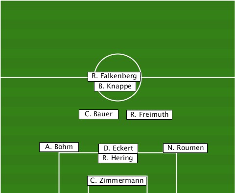 -------------R. Falkenberg------- --------------B. Knappe---------- ------------C. Bauer-R. Freimuth-- -------A. Böhm--D. Eckert-N. Roumen ---------------R. Hering--------- -------------C. Zimmermann-------
