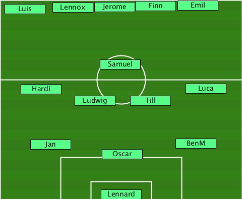 -------------------------Emil---- --Luis---Lennox-Jerome-Finn--------- ---------------Samuel------------ ----Hardi------------------Luca--- -----------Ludwig---Till---------- -----Jan------------------BenM---- ---------------Oscar------------- ---------------Lennard-----------