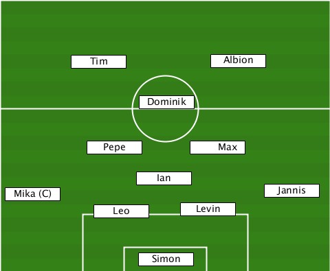 ----------------------Albion----- --------Tim---------------------- ---------------Dominik----------- ----------Pepe-------Max---------- ---------------Ian--------------- --Mika (C)------------------Jannis -----------Leo------Levin--------- ---------------Simon-------------