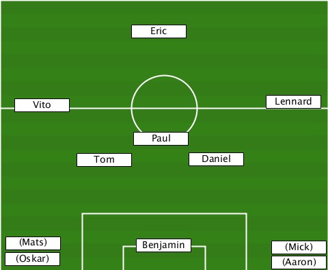 --------------Eric--------------- ---Vito---------------------Lennard --------------Paul--------------- ---------Tom---------Daniel------- --(Mats)--------Benjamin------(Mick) --(Oskar)--------------------(Aaron)