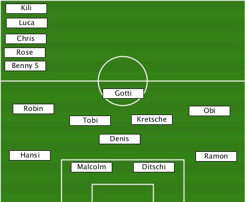 --Kili--------------------------- --Luca--------------------------- --Chris-------------------------- --Rose--------------------------- --Benny S------------------------ ---------------Gotti------------- ---Robin-------------------Obi---- -----------Tobi-----Kretsche------ --------------Denis-------------- ---Hansi--------------------Ramon- -----------Malcolm--Ditschi-------