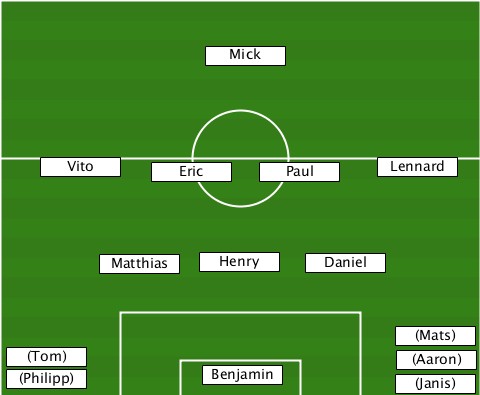 ---------------Mick-------------- ----Vito-----Eric----Paul-----Lennard --------Matthias-Henry--Daniel----- ----------------------------(Mats) --(Tom)----------------------(Aaron) --(Philipp)-----Benjamin------(Janis)