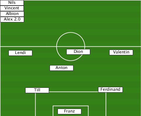 -Nils---------------------------- -Vincent------------------------- --Albion------------------------- --Alex 2.0----------------------- ---Lendi----------Dion------Valentin -------------Anton--------------- -------Till--------------Ferdinand ---------------Franz-------------