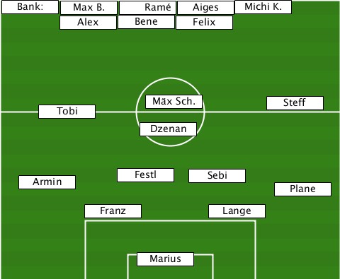 ------------------------Michi K.- --Bank:-Max B.-Ramé--Aiges---------- -------Alex---Bene--Felix---------- -----Tobi-------Max Sch.-----Steff- ---------------Dzenan------------ ---Armin-----Festl---Sebi-----Plane- ---------Franz--------Lange------- --------------Marius-------------