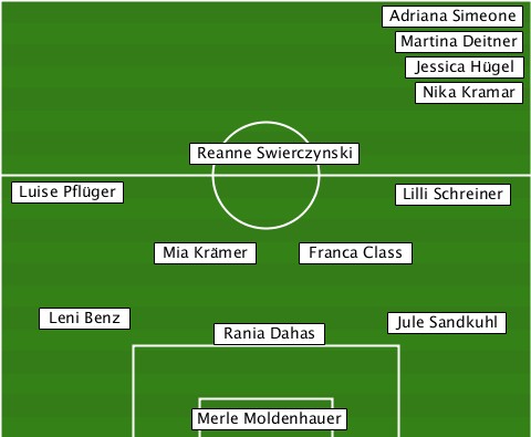 ------------------------Adriana Simeone -------------------------Martina Deitner --------------------------Jessica Hügel --------------------------Nika Kramar -------------Reanne Swierczynski- --Luise Pflüger-----------Lilli Schreiner -----------Mia Krämer-Franca Class ----Leni Benz--Rania Dahas-Jule Sandkuhl -------------Merle Moldenhauer---