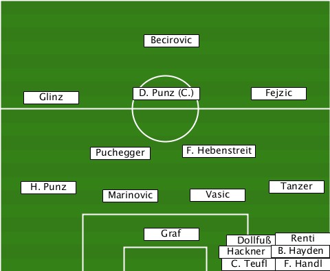 ---------------Becirovic--------- ----Glinz------D. Punz (c.)-Fejzic- ----------Puchegger-F. Hebenstreit ---H. Punz--Marinovic-Vasic----Tanzer ---------------Graf-----Dollfuß-Renti -----------------------Hackner-B. Hayden -----------------------C. Teufl-F. Handl