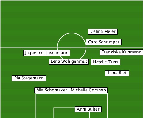 ---------------------Celina Meier ---------------------Caro Schrimper -------Jaqueline Tuschmann-Franziska Kuhmann ------------Lena Wohlgehmut-Natalie Tüns -------------------------Lena Blei ----Pia Stegemann---------------- ---------Mia Schomaker-Michelle Görshop ------------------Anni Bülter----