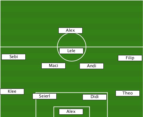 ---------------Alex-------------- ---------------Lele-------------- --Sebi-----------------------Filip -----------Maci-----Andi---------- -Klee-----Seierl------Didi----Theo-- ---------------Alex--------------