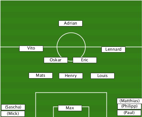 ---------------Adrian------------ ------Vito---------------Lennard-- -----------Oskar---Eric----------- --------Mats----Henry---Louis------ ----------------------------(Matthias) --(Sascha)------Max-----------(Philipp) --(Mick)---------------------(Paul)