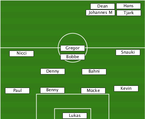 ---------------------------Hans-- ---------------------Dean-------- --------------------Johannes M-Tjark ----Nicci-------Gregor-Bobbe--Snauki ----------Denny------Bahni-------- ---Paul----Benny-----Mücke----Kevin- ---------------Lukas-------------