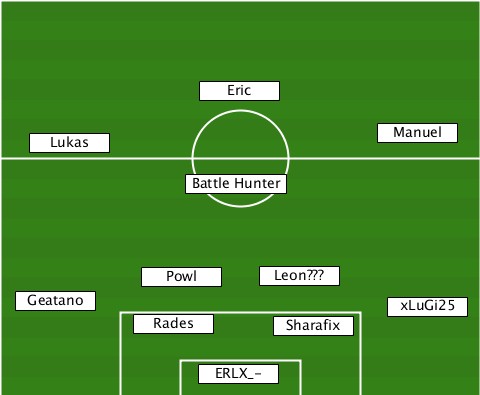 ---------------Eric-------------- ---Lukas--------------------Manuel --------------Battle Hunter------ -----------Powl-----Leon???------- --Geatano-------------------xLuGi25 ----------Rades------Sharafix----- ---------------ERLX_-------------