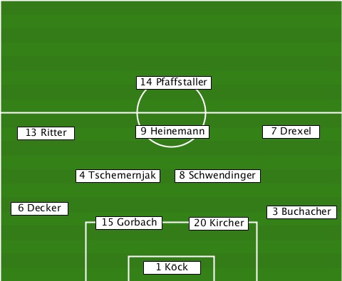 --------------14 Pfaffstaller---- ---13 Ritter---9 Heinemann--7 Drexel ---------4 Tschemernjak-8 Schwendinger --6 Decker-----------------3 Buchacher ----------15 Gorbach-20 Kircher--- ---------------1 Köck------------