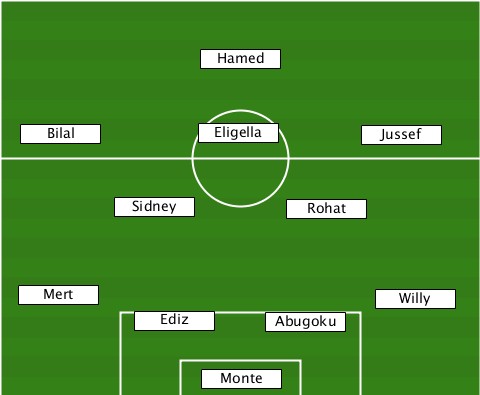 ---------------Hamed------------- ---Bilal--------Eligella----Jussef- ---------Sidney-------Rohat------- ---Mert--------------------Willy-- ----------Ediz------Abugoku------- ---------------Monte-------------