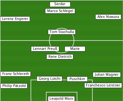 --------------Serdar------------- -------------Marco Schlegel------ -Lorenz Engerer------------Alex Nowara --------------Tom Stachulla------ ----------Lennart Preuß-Marie----- --------------Rene Dietrich------ --Franz Schlereth----------Julian Wagner -----------Georg Loichi-Puschkin-- --Philip Pätzold--------Franchesco Leistner --------------Leopold Marx-------