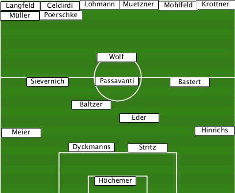 ----------------------------Krottner --Langfeld-Celdirdi-Lohmann-Muetzner-Mohlfeld -Müller-Poerschke----------------- ---------------Wolf-------------- -----Sievernich-Passavanti-Bastert- -----------Baltzer--------------- ------------------Eder----------- --Meier----------------------Hinrichs -----------Dyckmanns-Stritz------- --------------Höchemer-----------