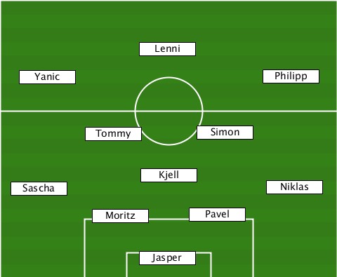 ---------------Lenni------------- ---Yanic-------------------Philipp ----------Tommy------Simon-------- ---------------Kjell------------- --Sascha--------------------Niklas ----------Moritz----Pavel--------- ---------------Jasper------------