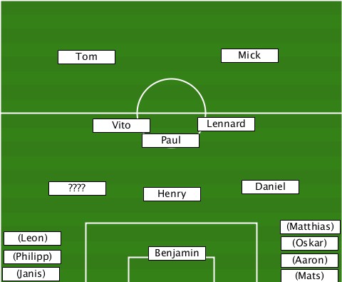 ----------------------Mick------- -------Tom----------------------- ----------Vito-------Lennard------ ---------------Paul-------------- ------????------Henry-----Daniel--- ----------------------------(Matthias) --(Leon)-(Philipp)-Benjamin----(Oskar)-(Aaron) --(Janis)--------------------(Mats)