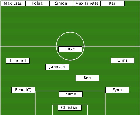 -------------------------Karl---- --Max Esau-Tobia-Simon-Max Finette-- ---------------Luke-------------- ---Lennard------------------Chris- ------------Janosch-------------- -------------------Ben----------- ----Bene (C)---------------Fynn--- ---------------Yuma-------------- ---------------Christian---------