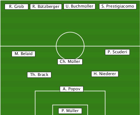 ----------------U. Buchmüller---- ---R. Grob-R. Bützberger--S. Prestigiacomo ----M. Belaid-------------P. Scuderi ---------------Ch. Müller-------- --------Th. Brack------H. Niederer ---------------A. Popov---------- ---------------P. Müller---------
