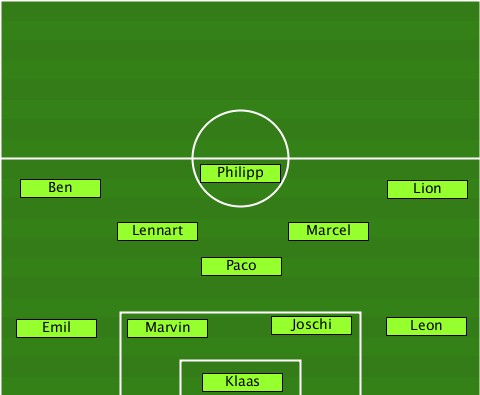 ---------------Philipp----------- ---Ben----------------------Lion-- ---------Lennart------Marcel------ ---------------Paco-------------- ---Emil----Marvin-----Joschi--Leon-- ---------------Klaas-------------