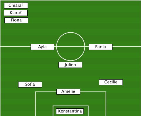 --Chiara?------------------------ --Klara?------------------------- --Fiona-------------------------- --------Ayla-----------Rania------ ---------------Jolien------------ ------Sofia--------------Cecilie-- --------------Amelie------------- --------------Konstantina--------