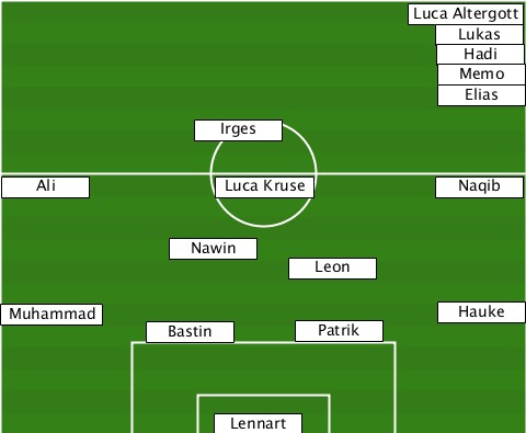 --------------------------Luca Altergott ----------------------------Lukas ----------------------------Hadi- ----------------------------Memo- ----------------------------Elias -------------Irges--------------- --Ali-----------Luca Kruse----Naqib ------------Nawin---------------- -------------------Leon---------- -Muhammad--------------------Hauke ----------Bastin----Patrik-------- --------------Lennart------------