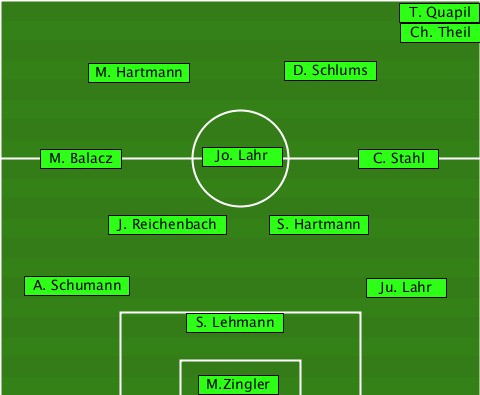 ----------------------------T. Quapil ----------------------------Ch. Theil -------M. Hartmann---D. Schlums--- ----M. Balacz---Jo. Lahr---C. Stahl ---------J. Reichenbach-S. Hartmann ---A. Schumann-------------Ju. Lahr --------------S. Lehmann--------- ---------------M.Zingler---------