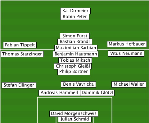--------------Kai Dirmeier------- --------------Robin Peter-------- --------------Simon Fürst-------- --Fabian Tippelt-Maximilian Barbian-Bastian Brandl-Markus Hofbauer --Thomas Starzinger-Benjamin Hautmann-Vitus Neumann --------------Tobias Miksch------ -------------Christoph Gleißl---- --------------Philip Bortner----- --Stefan Ellinger-Denis Vavricka-Michael Waller ----------Andreas Hammerl-Dominik Glötzl ------------David Morgenschweis-- --------------Julian Schmid------