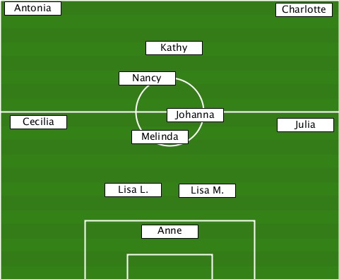 --Antonia------------------------ ---------------------------Charlotte ---------------Kathy------------- -------------Nancy--------------- --Cecilia---------Johanna-----Julia --------------Melinda------------ -----------Lisa L.-Lisa M.-------- ---------------Anne--------------