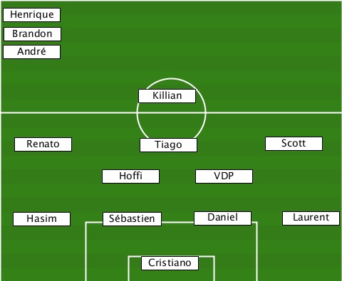 --Henrique----------------------- --Brandon------------------------ --André-------------------------- --------------Killian------------ ---Renato-------Tiago-------Scott-- -----------Hoffi-----VDP---------- ---Hasim----Sébastien-Daniel---Laurent ---------------Cristiano---------