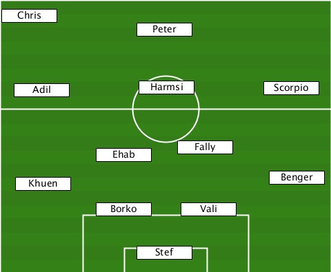--Chris-------------------------- ---------------Peter------------- ---Adil---------Harmsi-------Scorpio -----------Ehab-----Fally--------- ---Khuen--------------------Benger -----------Borko----Vali---------- ---------------Stef--------------