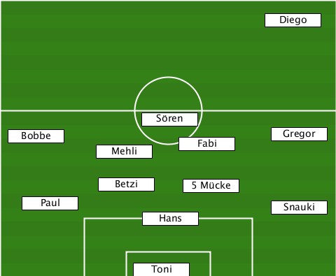 ---------------------------Diego- ---------------Sören------------- --Bobbe-----Mehli---Fabi------Gregor -----------Betzi----5 Mücke------- ----Paul--------------------Snauki ---------------Hans-------------- --------------Toni---------------