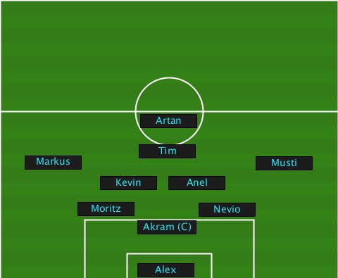 ---------------Artan------------- ---------------Tim--------------- ----Markus-----------------Musti-- -----------Kevin--Anel------------ ---------Moritz------Nevio-------- --------------Akram (C)---------- --------------Alex---------------